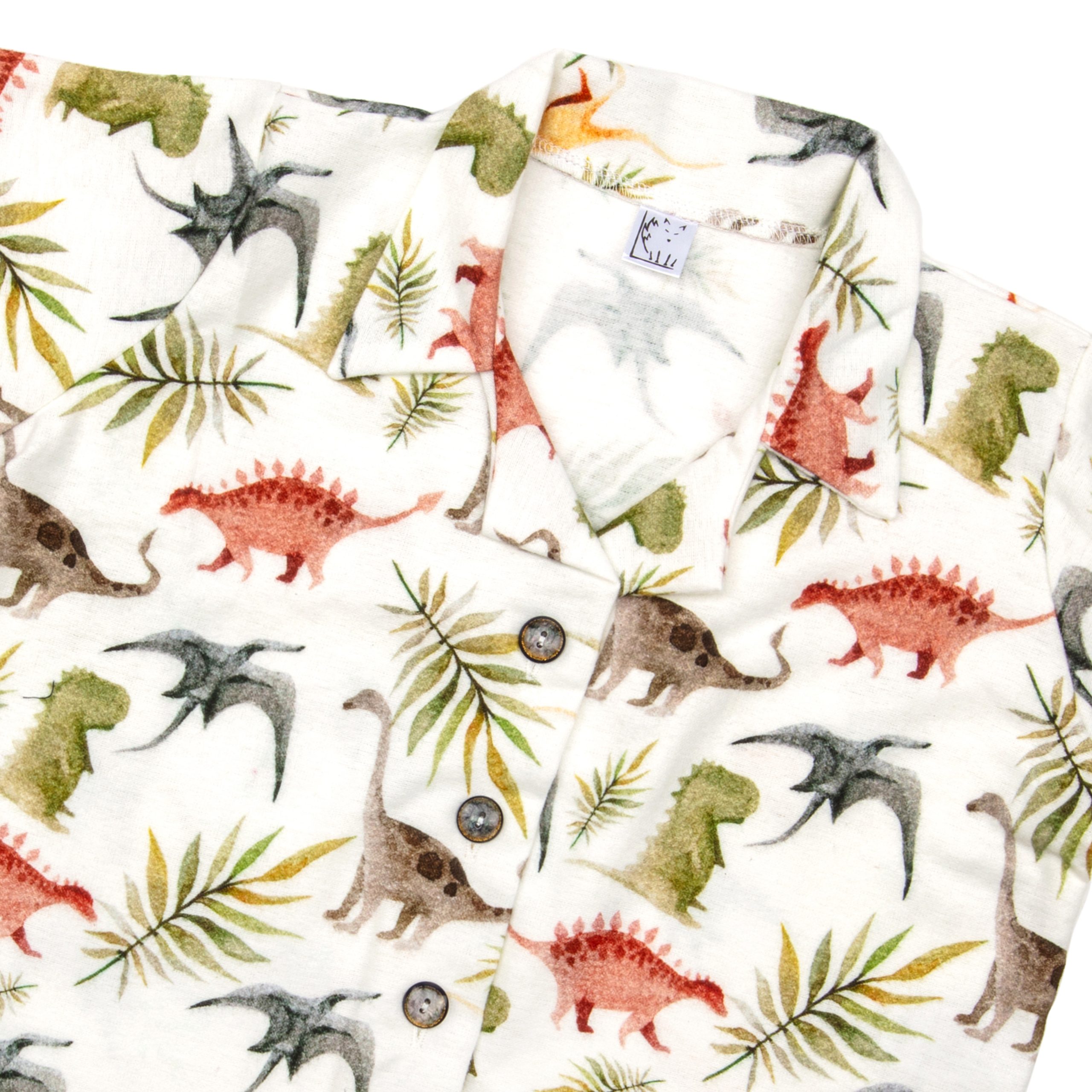 Roar into bedtime with this boys’ brushed cotton pyjama set! Covered in playful dinosaur prints, it’s super soft, snug, and perfect for cosy prehistoric dreams.